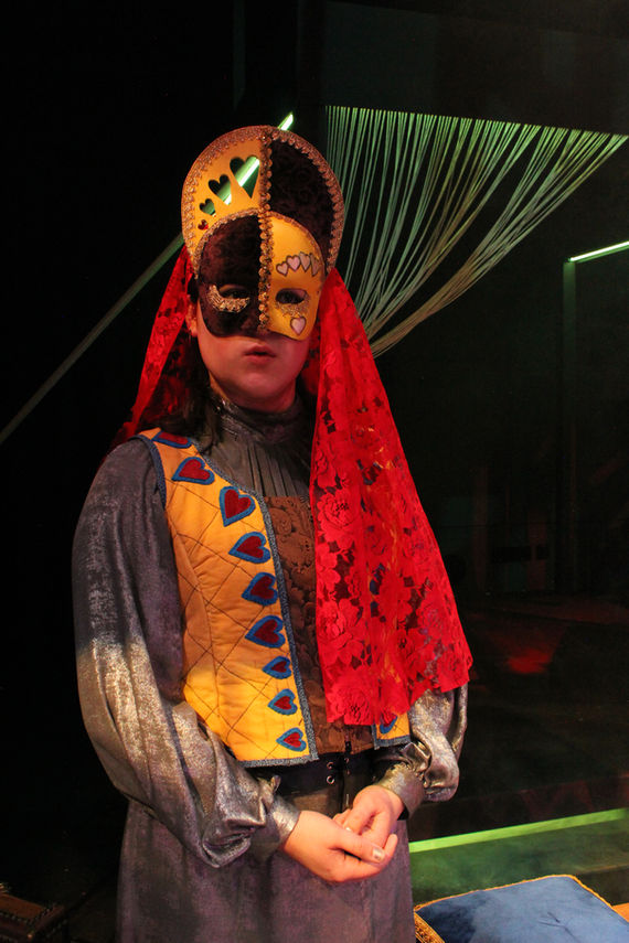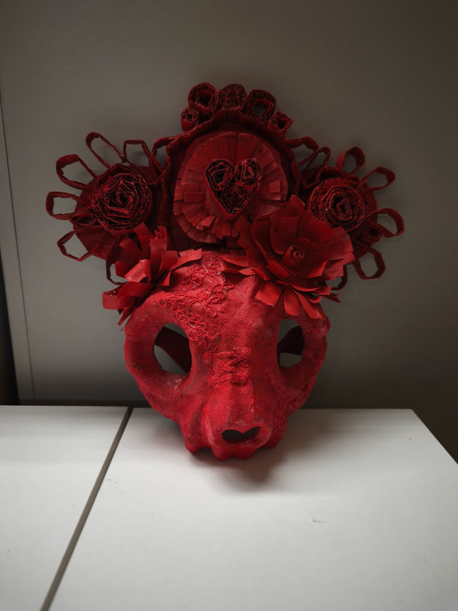 Material: Plastic half masks, Fosshape, Fabrics, Laces, Acrylic paint